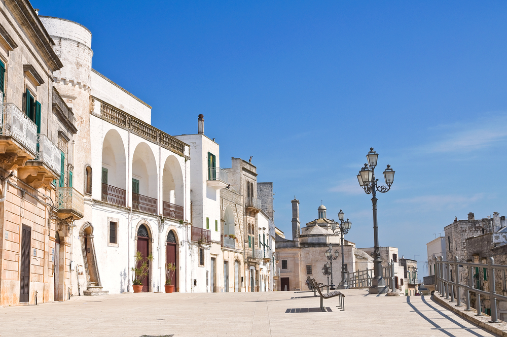 Perdersi nei vicoli e nelle piazze del centro storico di Cisternino, con le case bianche unite da archi e scale esterne, è un’esperienza affascinante, un vero capolavoro di architettura popolare.