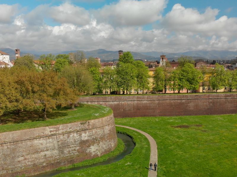 A Lucca, le mura storiche cittadine non sono solo un confine, ma il fulcro della vita locale, con i loro 12 metri di altezza e una passeggiata panoramica sulla sommità che le trasforma in un parco urbano sospeso.