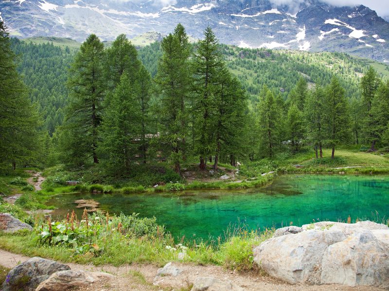 Il Lago Arpy, situato a 2.066 metri di altitudine, è una perla della Valle d’Aosta. Il sentiero che conduce al lago, lungo circa 3 chilometri, è accessibile a escursionisti di media esperienza e famiglie con bambini abituati a camminare. Il panorama che si apre una volta raggiunta la destinazione è semplicemente mozzafiato: le acque cristalline del lago riflettono le cime imponenti del Monte Bianco e del Monte Chaz Dura. Il luogo perfetto per una sosta rilassante, un picnic immersi nella natura o per scattare foto indimenticabili.