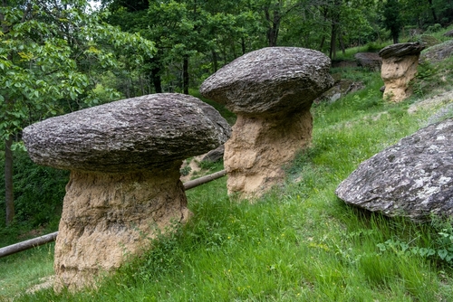 Questi ultimi hanno costruito i gambi dei funghi di pietra, mentre i cappelli invece si sono modellati dopo terremoti e frane che hanno causato il distacco dei massi dal monte.