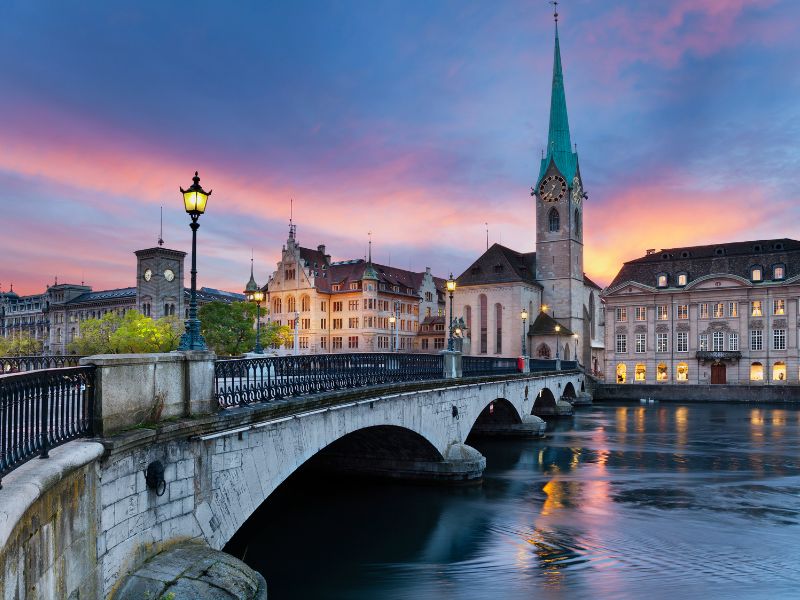 Zurigo è tra le città con la migliore qualità di vita al mondo e, nel 2023, è stata riconosciuta come “la più intelligente” secondo lo Smart City Index. Ha accolto illustri personaggi come Albert Einstein e James Joyce, ed è famosa per i suoi mercatini di Natale e il più grande festival techno del mondo. Incastonata in un paesaggio pittoresco.