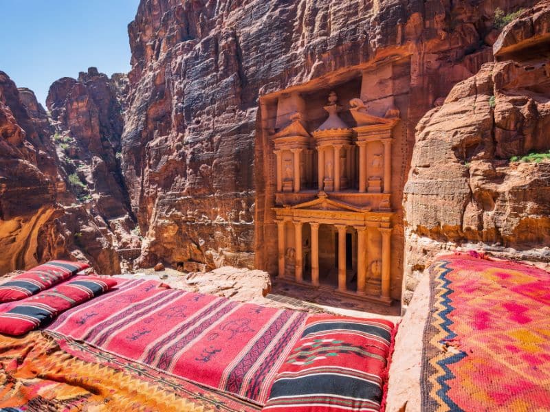 Sicuramente l’antica città di Petra è famosa in tutto il mondo. Un tempo al centro delle vie carovaniere, è scolpita in pietra arenaria che cambia colore con la luce. Entrando attraverso il Siq, il canyon che conduce al Tesoro, si è avvolti dalla magia del luogo. Trascorrere la notte a Petra è un’esperienza da fare perché così si può visitare l’area archeologica all’alba, quando la luce è migliore. Il percorso, seppur faticoso, vale la pena e premia il turista che raggiunge il Monastero, un monumento maestoso con un punto panoramico eccezionale.