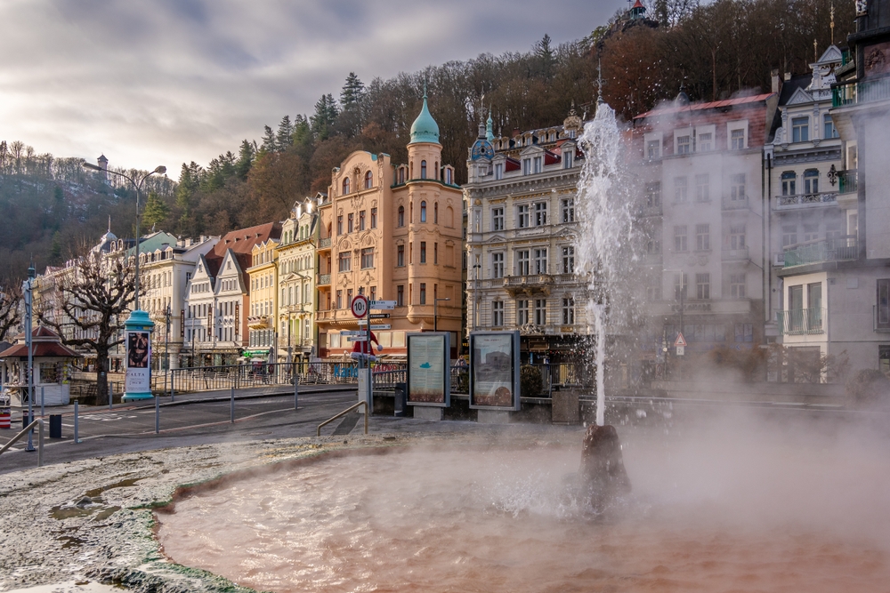 A Karlovy Vary, una delle città del Triangolo d'oro della Boemia, dalle fontane sgorga acqua termale