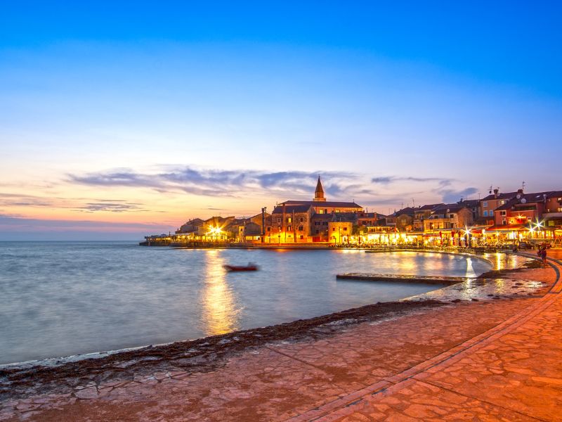 Umago è anche una delle cittadine più affascinanti dell’Istria settentrionale. Il centro storico, caratterizzato da strette strade lastricate, edifici medievali colorati e il maestoso campanile della chiesa dell’Assunzione della Beata Vergine Maria e di San Pellegrino, offre viste splendide sull’Adriatico. Le antiche mura, la porta cittadina e il ponte levatoio del X secolo aggiungono un tocco storico alla visita.